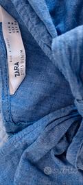Bellissimo vestito denim Zara, taglia M, in cotone 100% , allacciato come un top con fiocco sul davanti e apertura da sotto il fiocco fino alla vita , tasche laterali, bretelle regolabili e chiusura con zip. Indossato pochissime volte, ottime condizioni.