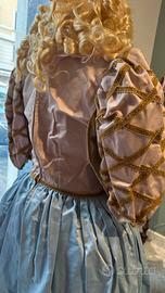 Lussuoso vestito di Carnevale nobildonna con parrucca e borsetta inclusi Interamente cucito a mano In ottime condizioni Taglia 40