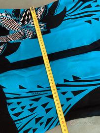 Bellissimo vestito azzurro e nero di seta, marca Byblos, taglia 42. Fantasia floreale sul davanti, nero sul retro. In ottime condizioni, ha solo un piccolo difetto (si sono formate delle righine sulla parte azzurra) ma che addosso non si nota. La ragazza in foto è alta 1.65.