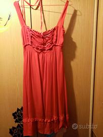 vestito di seta con nastro intrecciato si può stringere e regolare, nel seno è aderente ma elasticizzato e sotto al seno rimane morbido si allarga. L abito è di un bel rosso vivo indossato poco tenuto bene è di seta