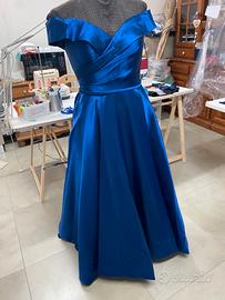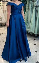 vestito in raso con scollo omerale in blu royal, come nuovo, usato solo la sera del mio compleanno. MISURA L