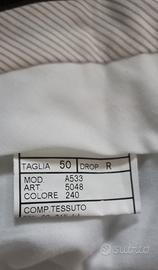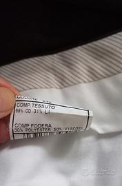Vestito uomo colore blu marine. Taglia 50 Drop 4 R, in tessuto 69% cotone e 31% lino, estivo e molto informale, ma pur sempre elegante anche per cerimonie. Marca Domenico Tagliente , un brand casual fashion che si rivolge ad un pubblico giovane e dinamico, il suo punto di forza sono le giacche e gli abiti maschili. Le vestibilità sono impeccabili e riescono ad esaltare al meglio la figura maschile, le rifiniture pregiate e i dettagli curati. L'abito molto elegante di color blu è nuovissimo , indossato solo due volte. Si indicano le misure: Larghezza spalle: cm 47; Torace da ascella ad ascella a giacca abbottonata: cm 56; Larghezza da fianco a fianco in corrispondenza del bottone centrale: la giacca ha due bottoni, la misura sul primo bottone : 52 cm, sul secondo bottone in corrispondenza delle tasche: 52,5; Lunghezza della manica; misura dall’attaccatura della spalla: cm 61 Lunghezza posteriore della giacca dalla sommità del colletto al bordo inferiore: 75 cm; Vita del pantalone presa frontalmente da fianco a fianco: cm 46; Lunghezza interna della gamba dal cavallo all’orlo: cm 74; stoffa all’interno dell’orlo del pantalone: cm 5.