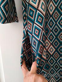 vestito donna al ginocchio Forpen taglia M multicolore toni verde petrolio e nero in ottime condizioni. due tasche laterali invisibili maniche tre quarti.
