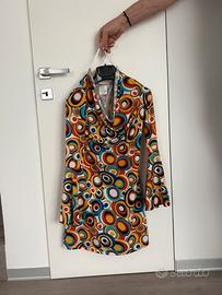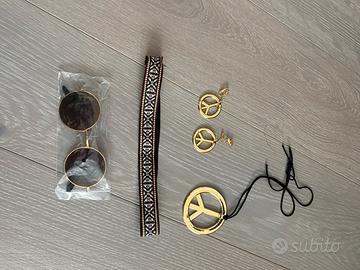 Abito donna per festa anni 60-70 con inclusi gli accessori come da foto: occhiali, orecchini e collana peace and love. Infine fascia per capelli sempre a tema.taglia S 40/42