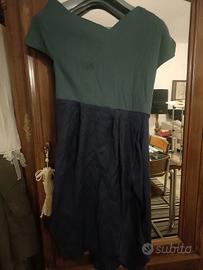vestito donna design maglioni bicolor verde sottobosco e blu brillante