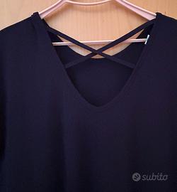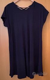 Vestito colore blu, manica corta con bordino. Scollo tondo parte davanti e scollo a V parte dietro. Comodo ampio e confortevole in tutte le occasioni. Taglia unica veste una L Lunghezza circa cm. 90 No consegna a mano solo invio