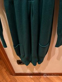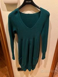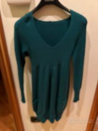 Vestito da donna con scollo a V e maniche lunghe. Presenta due tasche applicate sul davanti.