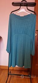 Vestito donna, marca Caractère. Colore blu petrolio. Sancrato sotto il seno con elastici ai polsi. In viscosa 100%. Taglia 48( vestibilità 46/48). La lunghezza per un'altezza di 165cm è a metà coscia. Usato, ma ben tenuto.