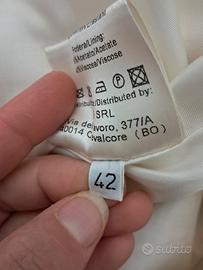 Bellissimo vestito donna elegante taglia 42 con tasche laterali e con cordoncino in vita da fare un fiocco 🎀 dietro o d'avanti come lo volete l'unico difetto presenta una piccola macchia gialla non si nota molto ma c'è non so se è l'umidità non presenta altri difetti per maggiori informazioni scrivetemi larghezza da ascella ad ascella e di 44cm lunghezza totale 94cm colore panna