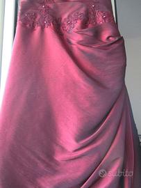 Vestito elegante con stola rosso bordeaux taglia 48/50 messo una volta per un matrimonio, con ricami sulla parte alta sia davanti che dietro e strass sui fiori, con tulle sotto e leggermente più lungo dietro con un po' di strascico. Veramente bello elegante e come nuovo.