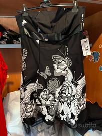 Vestito donna estivo nero con fantasia farfalle bianco taglia XL