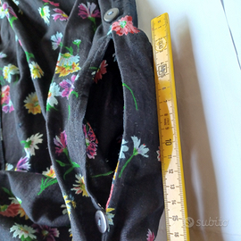 - 2 tasche, una per ogni lato, realizzate all'interno con lo stesso tessuto del vestito, larghe 14 e lunghe 23 cm, con apertura verticale esterna alta 15 cm distante da 45 a 60 cm dal fondo. La tasca sx ha 2 bottoni neri di diametro 15 mm, distanti 15 cm