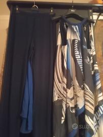 vestito donna elegante usate una sola volta con maglietta senza maniche e pantaloni blu elegante