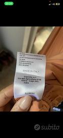 Vestito lungo di colore pesca. Manica a sbuffo. Elastico sulla vita. Scollo a V. Mai indossato. Taglia 40