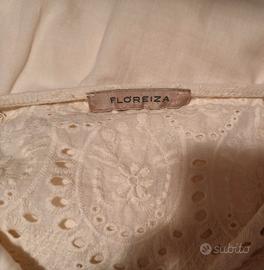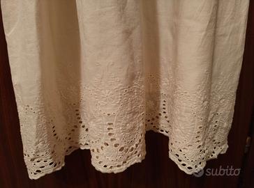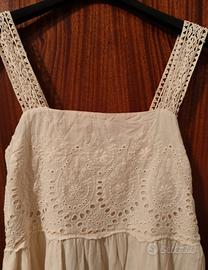 Vestito donna colore crema 100% cotone con corpetto e orlo inferiore in Sangallo. Interamente foderato in cotone. Marca: Floreiza Taglia S