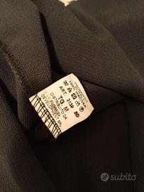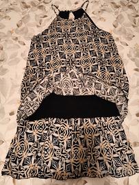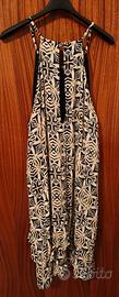 Vestito donna charleston colore fantasia (nero, bianco e crema), con scollatura sulle spalle 100% viscosa con doppio falpalo. Interamente foderato.