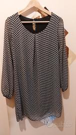 Vestito corto foderato casual. In foto ho aggiunto una cintura in stoffa per far vedere che può essere versatile indossando una cintura o anche senza. Colori bianco e nero.
