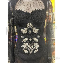 VESTITO DONNA NERO CON PIZZO ELISABETTA FRANCHI TAGLIA S IN BUONE CONDIZIONI A