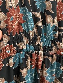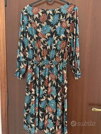 Vestito Nuna Lie con fantiasia floreale sui toni del turchese e color mattone. Maniche a 3/4 con elastico ed elastico per valorizzare punto vita. Piccola imperfezione sulla gonna con un lieve segno di un piccolo filo tirato. metto la foto per correttezza, ma una volta indossato non si vede.