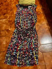 Abito da donna elegante nuovo Taglia 44 Fondo nero e fantasia mix di colori Stola verde acido seta