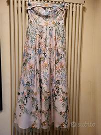 Cerniera posteriore nascosta. Indossato una sola volta. Coprispalle in chiffon azzurro.