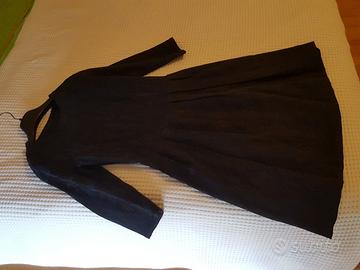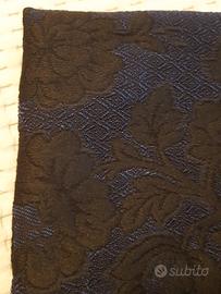 Bellissimo vestito realizzato su misura, usato solo per cerimonia, damascato blu scuro/nero, veste circa tg. 44, per donna alta tra 160 e 165 cm circa, peso kg. 55-57; vendo causa non uso. Disponibile cintura sovrapponibile a piacere, come in foto. Manica a 3/4.