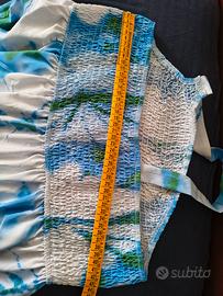 Vendo vestito da donna, taglia 3XL. Modello estivo, senza maniche con bretella monospalla. Larghezza torace 43 Cm, lunghezza abito 105 Cm. Stoffa acrilico.