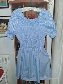 Vestito / Vestitino Donna fresco, estivo, maniche a sbuffo, arricciato in vita, lunghezza al ginocchio, scollatura e vita con elastico arricciato.