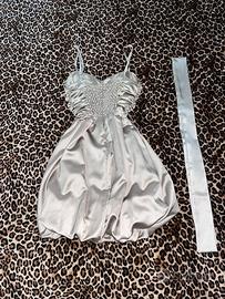 vestito elegante dorato con cinta e coprispalla usato solo una volta del negozio “mon monde”