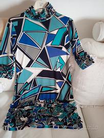 Vestito elasticizzato, anni 60, veste dalla 40 alla 44,arricciature sul collo, maniche e bordo vestito molto bello e particolare