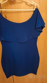 Vestito elegante blu da donna, aderente e molto femminile. Ideale per feste, eventi o serate. Tessuto elasticizzato e comodo.