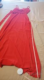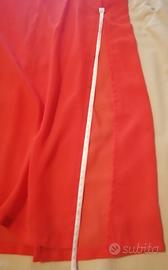 Vestito con doppio tessuto fino al ginocchio poi trasparente fino alle caviglie. Con spacco laterale e cerniera sul lato. Misure da foto.