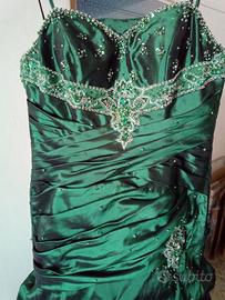 Importante ed elegante abito da cerimonia (come testimone) da prestigiosa atelier sposa. Pregiato tessuto in taffetà lucido e brillante. Dotato di stola con trasformazione sartoriale in giacchino corto.