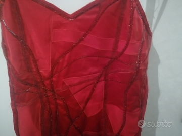 adatto per le feste natalizie Vestito color rosso con lavorazione sul davanti. Elegante taglia 44 in elastam e poliamide Indossato 1 sola volta per cambio taglia.