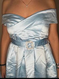 Vestito da sera elegante con spalle scoperte, pieghe, apertura sul lato della coscia, adatto per balli, cerimonie formali, matrimoni, lauree, cene di gala Scusate le condizioni ma non l ho mai usato messo solo x la foto