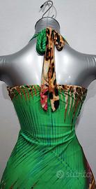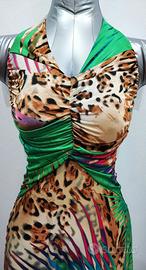 Il vestito estivo leggero da donna elegante in cotone è a fantasia savana e leopardato.