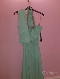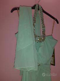 Vendesi vestito elegante donna per cerimonia mai indossato taglia 48 (vestibilità 46) linea Invito Haute couture verde tiffany completo di stola.