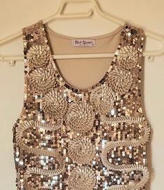vestito elegante con applicazioni e paillettes colore beige-oro taglia M/L collezione Red Queen mai indossato