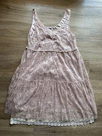 Vestito molto elegante e romantico rosa lungo fino sopra il ginocchio, taglio sotto il seno, perfetto con uno stivale marrone e un cardigan lungo, taglia unica vesto fino alla L