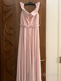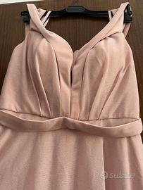 vestito elegante rosa glitterato con spalline che cadono morbide sotto alle spalle, veste più stretto sul décolleté e più morbido dalla vita in giù perfetto per occasioni più eleganti, praticamente nuovo indossato solo una volta