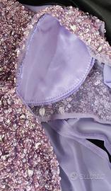 Abito lungo colore Lilla con coppe imbottite Corpetto paillettes e perline Taglia 38/40 Altezza 157/160