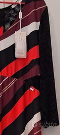bolerino pizzo nero e gonna a righe oblique snellenti