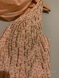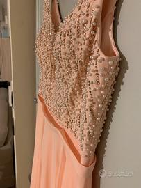 Abito elegante Mascara colore rosa pesca, usato una sol volta e fatto lavare in lavanderia quindi assolutamente come nuovo. Completo di stola. Con coppe per il seno, taglia 38.