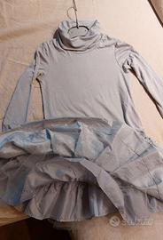 Vestito per bambina di 8/9 anni . In maglia, quindi facilmente adattabile alle forme,adatto per comunione/cresima o cerimonie. Colore grigio perla tendente all'azzurro. Indossato una sola volta per un matrimonio. La gonna ha rose applicate solo sul davanti, uno strato di tulle e una frappa che tiene la gonna leggermente gonfia. Disponibile per la prova.