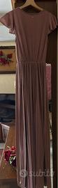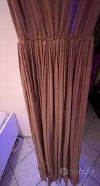 Abito Lungo Rosa cipria brillantina semplice ed elegante. Gonna plissettata, scollo a V. Elasticizzato quindi veste da una 40 a una 46.