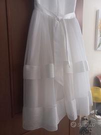 Vestito elegante bianco, ottimo tessuto e raffinata manifattura. Adatto per bambina 10-12 anni. Completo di coprispalle e coroncina. Perfetto. Ritiro su Roma o spedizione in Italia.