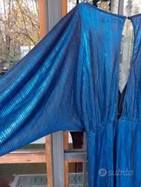 Vestito taglia M (per ultimo dell anno?) Blu elettrico.misure lunghezza 75 e vita davanti 35.,maniche lunghe e.larghe ,apertura dietro, scollato e drappeggio gonna davanti