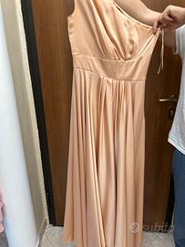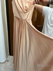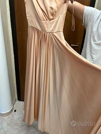 Vestito elegante rosa cipria . Molto comodo usato mezza giornata . Si chiude di lato con la cerniera . Particolare di lato alla spallina con i tre buttoncini