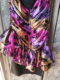 Nel corpo presenta bellissimi voulant multicolor la parte inferiore ha inserita gonna con spacco