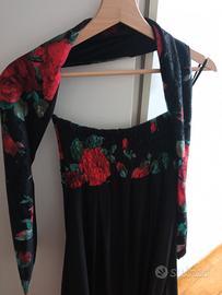 vestito elegante corto, parte superiore a balconcino, compreso di cintura stesso tessuto e disegno